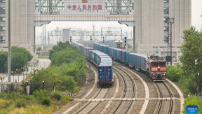 China-Europe freight train trips surpassed 10,000 this year, as a train bound for Duisburg in Germany departed from Wuhan, capital of central China's Hubei Prov...