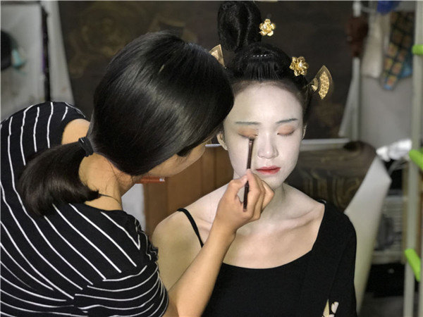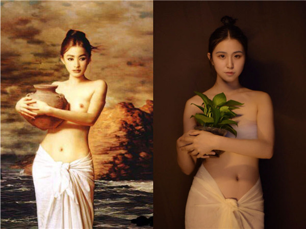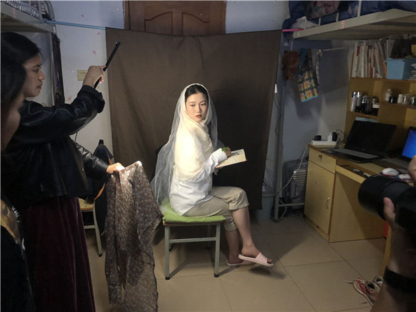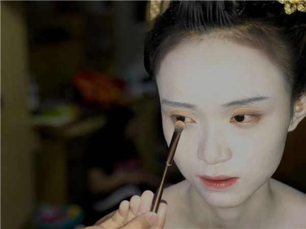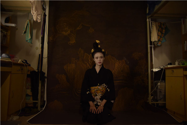Students from Yunnan University Dianchi College spent two days creating look of a geisha and famous paintings. The artists used no professional lighting or any special effects. [Photo by Zhu Yuhang and Xu Yuya/chinadaily.com.cn]