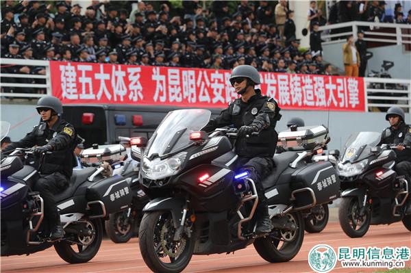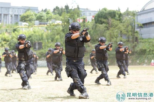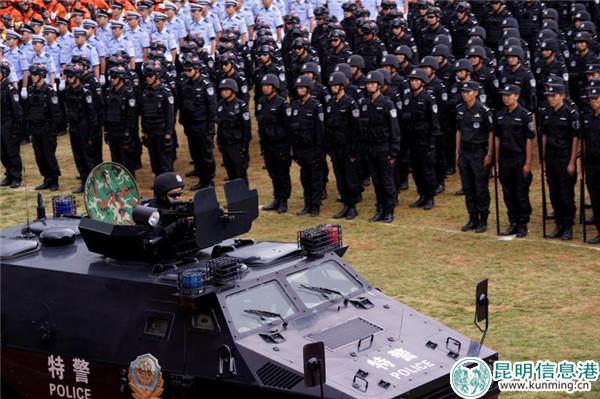 [InKunming--Kunming] On the morning of May 30th, Kunming Municipal Public Security Bureau held a new round of patrolling and controlling service to gear up for the 5th China-South Asia Expo. Over 2,000 people of traffic police, patrolling police, public security police and other police gathered together to participate in the actual combat practice.