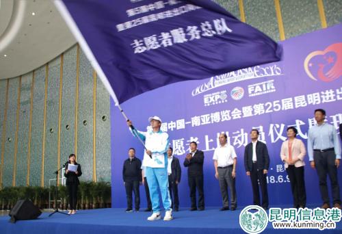 [InKunming--Kunming] On June 9th, the volunteer mounting guard ceremony of the 5th China-South Asia Expo and 25th China Kunming Import and Export Fair was held at Kunming Dianchi International Convention and Exhibition Center.