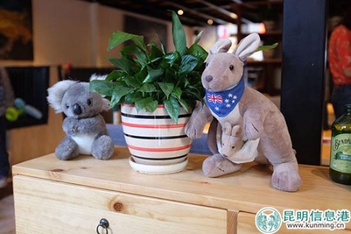 Charles put a koala and a kangaroo doll on the bar at the entrance of the restaurant. Ozzie’s officially opened.