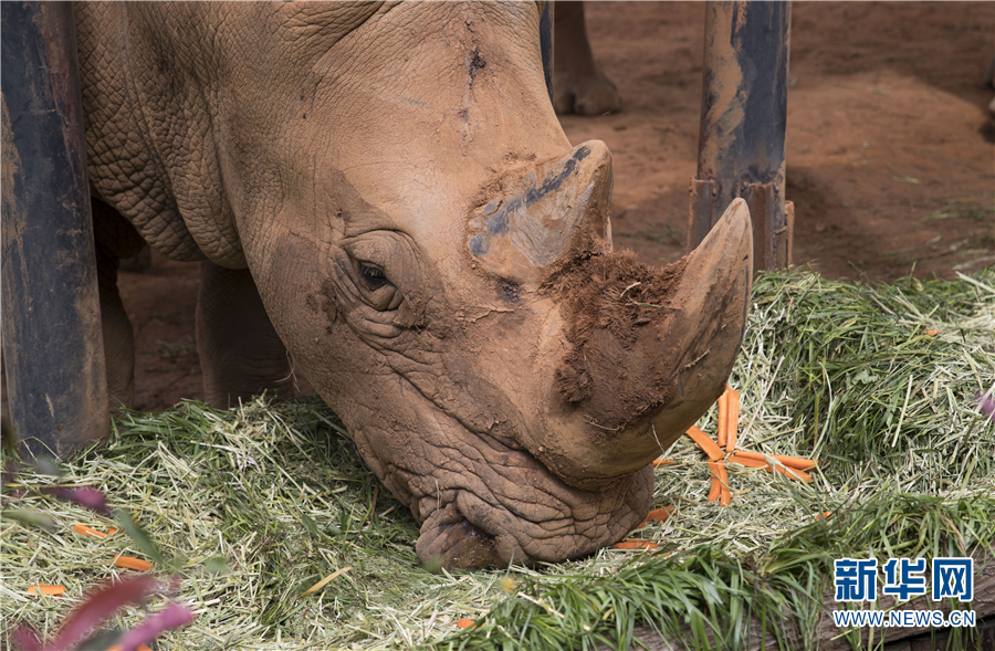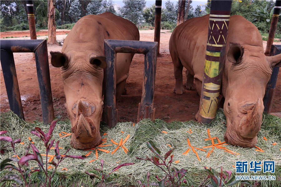 In order to entertain the white rhino couple, staff collected the grass as main course, then covered with a layer of fluffy alfalfa grass, and put the words “Happy Mid-Autumn Festival” on the top with sliced carrots.