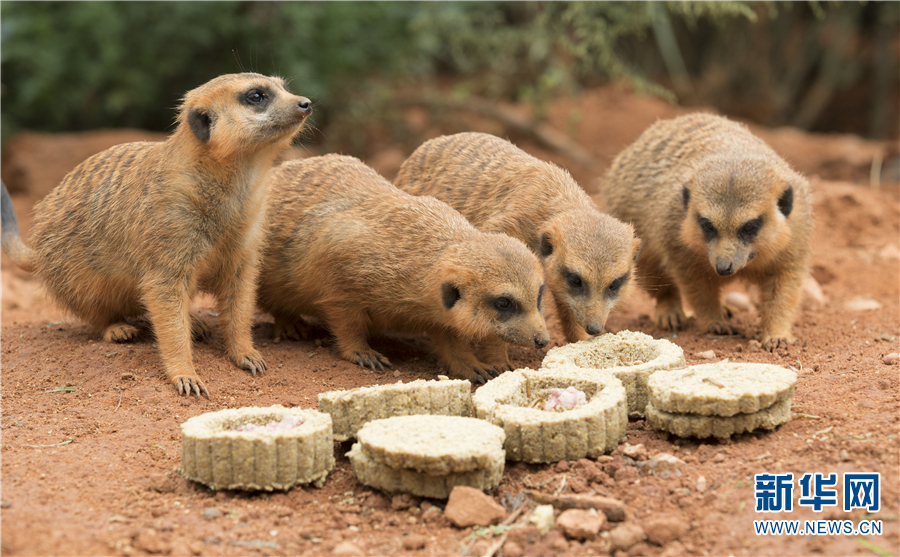 The meerkats mainly feed on insects, and workers at the zoo steamed some mooncakes specially designed for animals by hollowing out the middle and filling with insects and meat.