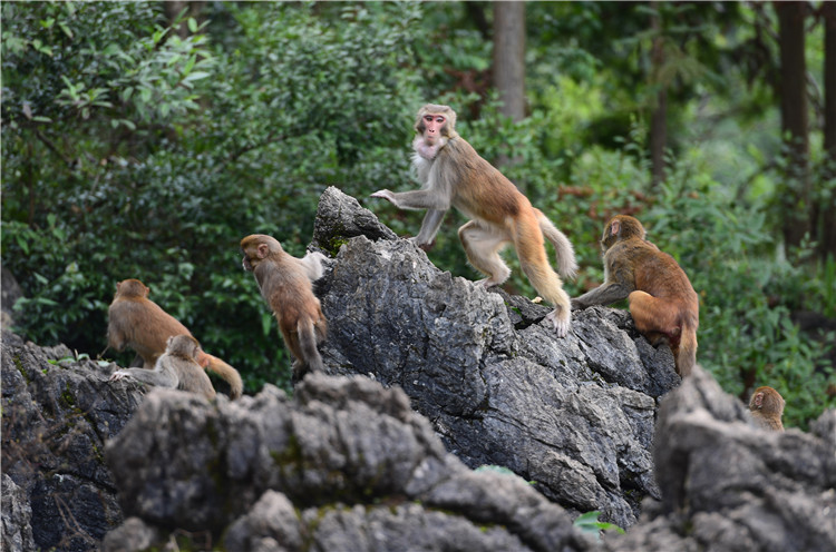 [InKunming--Yunnan] There is such a dreamlike place in Luoping, Qujing, Yunnan, just like the fairyland described in Journey to the West. Thousands of wild and mischievous macaques live deep in the mountains. Rising wind and scudding clouds make the place more mysterious and magnificent.