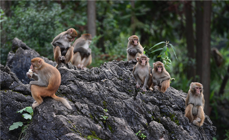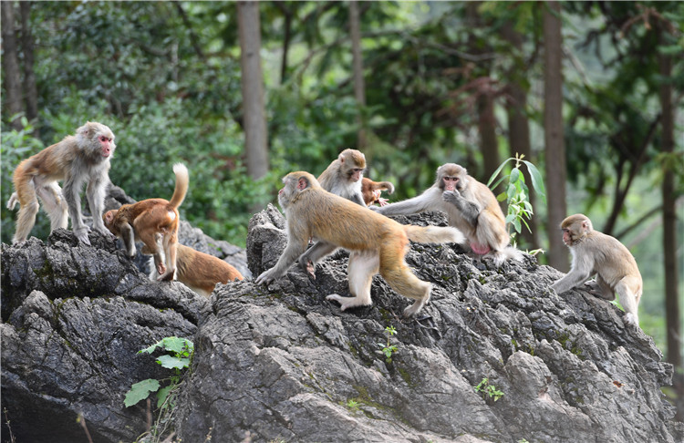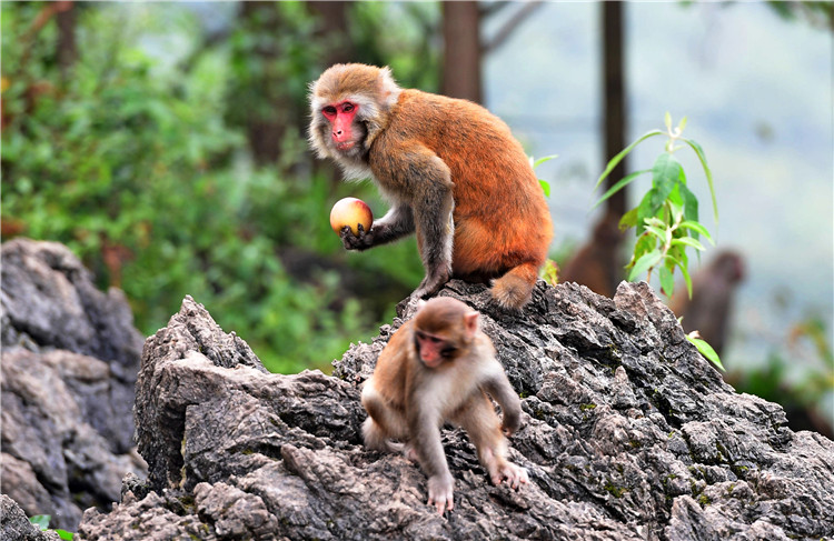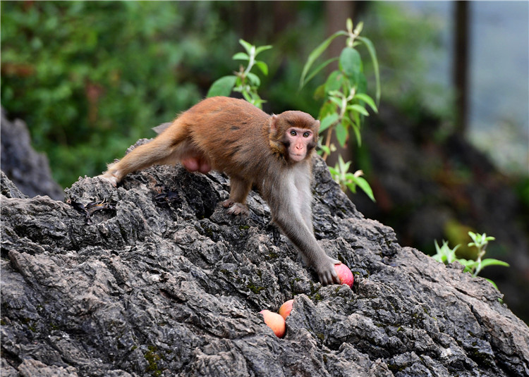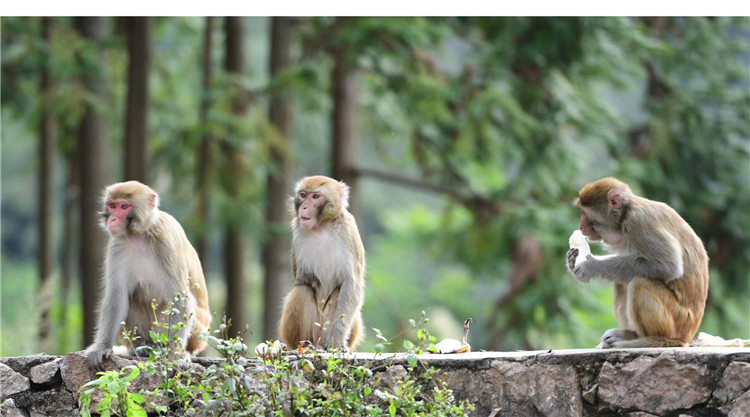 In autumn and winter, these naughty macaques go downhill for foraging due to the wild fruits gradually decreasing. The local provide them with food every day, which protects the surrounding crops from these macaques.