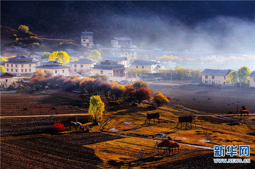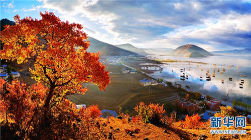 [InKunming--Yunnan] Napa lake is located in Shangri-La, Diqing Tibentan autonomous prefecture, Yunnan province. The name in Tibetan is “lake beside forest”. It is a seasonal swamp wetland which means the lake area will increase in late summer and early autumn. When winter comes, the lake reveals a large area of swampy meadows. As the rosy clouds slowly rising, Napa lake is beautiful as a painting, and the small villages nearby are dressed in autumn colors.