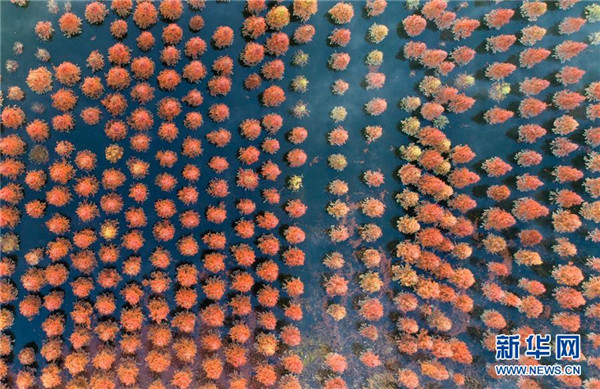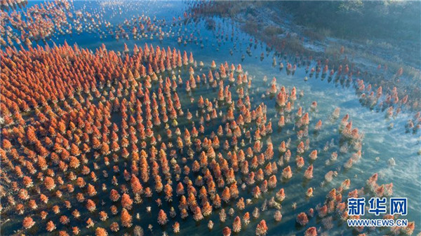 A view of metasequoia wetland in Dianwei village.(All the aerial photos were taken on January 5.) [Xinhua/Qinqing]