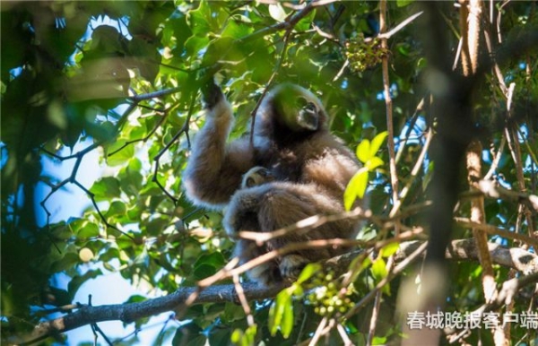[InKunming--Yunnan] Hoolock gibbon, considered as the rare species in the world, was photographed recently on Gaoligong Mountains by Yunnan Tongbiguan Nature Reserve Management and Conservation Bureau according to reliable sources.