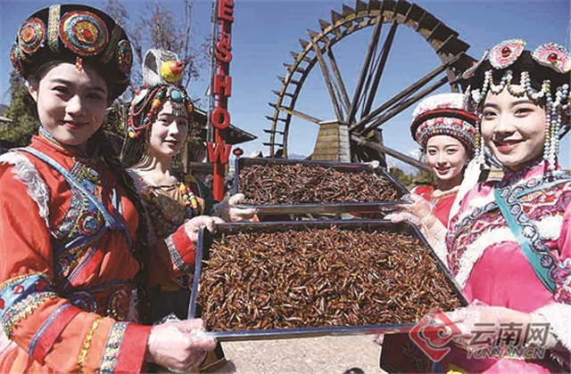 [InKunming--Yunnan] There are eighteen wired things in Yunnan. For example, “Three mosquitoes can be a dish. Grasshopper is delicious to go with wine.” As Yunnan is surrounded by mountains, many places including Lijiang maintain the custom of eating insects. Edible fried worms become a delicious dish for Yunnanese.