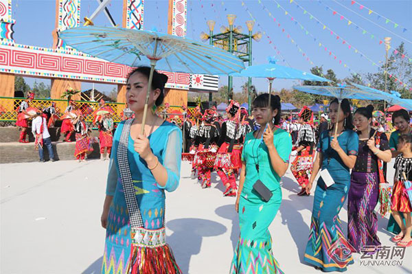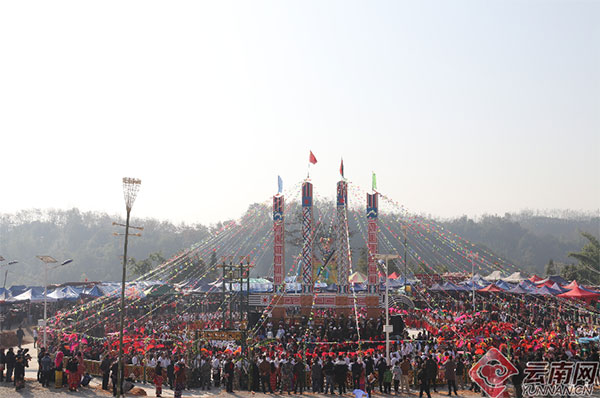 [InKunming--Yunnan] This year’s first Munao Zongge Festival (目瑙纵歌节) kicked off at Leinong village, Huyu Township, Ruili city, Dehong Autonomous Prefecture, Yunnan Province on January 26. It has been celebrated for 3 days. Tens of thousands of people sang and danced together.