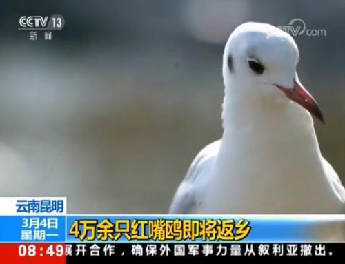 Another CCTV program Morning News covered that over 40,000 black-headed gulls in Kunming will fly back to their home in Siberia in March. At Cuihu Park in Kunming, the weight of black-headed gulls have grown obviously since arriving in Kunming in early November last year. The lightest one weighed just over 100 grams last year, while nearly half the gulls weigh more than 300 grams now.