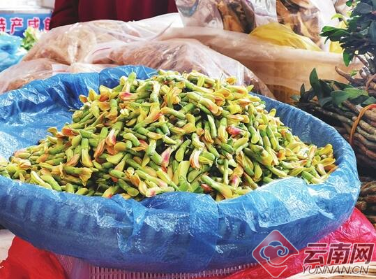 [InKunming--Yunnan] In Yunnan, various wild flowers and vegetables are rare delicacies in spring. After the Spring Festival holiday, a lot of wild edible vegetables you may never heard about have come on the market. Chinese mahogany, common broom, fiddlehead, walnut flower, shepherd’s purse and other fresh wild veggies smelled with a breath of spring attract people to select and buy.