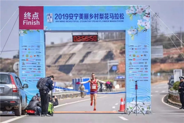 Daniel Landskroener, an American who has lived in Kunming for 2 years won the champion of men’s half marathon within 1 hour 28 minutes and 55 seconds. He has been running since he was 11 years old. “It is my first time to run in Anning Pear Flowers Marathon and I am so glad. It is difficult but interesting to run in pear flower track.” He added.