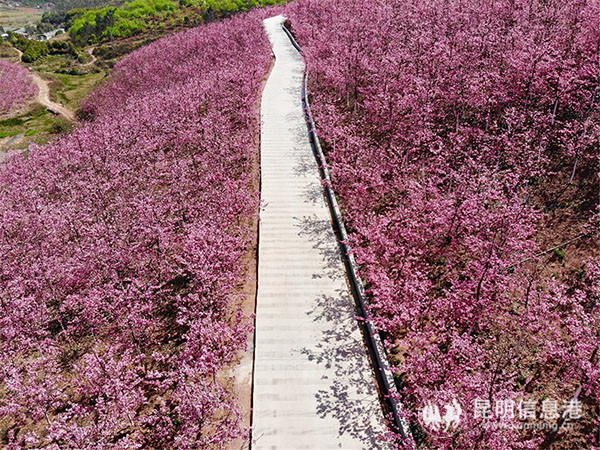 [InKunming--Kunming] Over 3,800 mu of cherry blossoms are flourishing in Yiliang county’s cherry blossom valley where a cherry blossom festival is in full swing from March 6 to April 10. [Su Wenqian/InKunming]