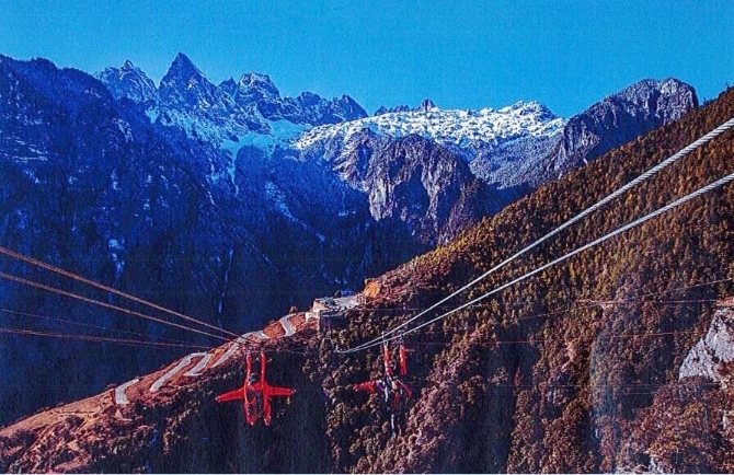 [InKunming--Yunnan] With an overall length of 425 meters and an altitude difference of 800 meters, the zip line located in Shangri-La’s Balog Zon scenic area was put into operation on March 17, 2019. It is the longest, highest and most exciting zip line in Yunnan province by far.