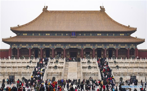 Tourists visit the Palace Museum in Beijing, capital of China, Feb. 5, 2019, the first day of Chinese Lunar New Year. (Xinhua/Shen Bohan)