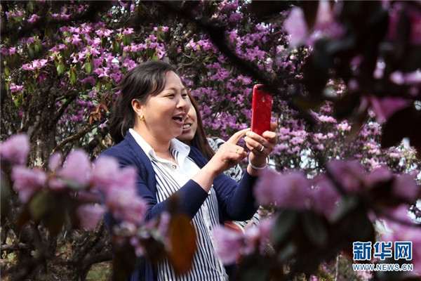 Photo shows tourists enjoy the azalea sea on Maer Mountain in Dali, Yunnan.