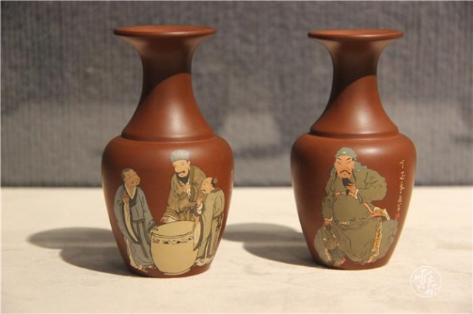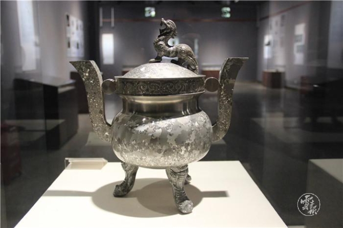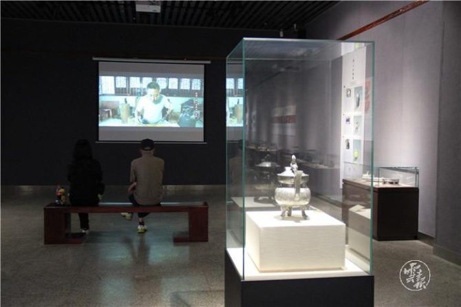 Honghe handicrafts like black copper works with silver figure of Shiping county, purple pottery works of Jianshui county, and tin wares of Gejiu city, are being exhibited in the hall.