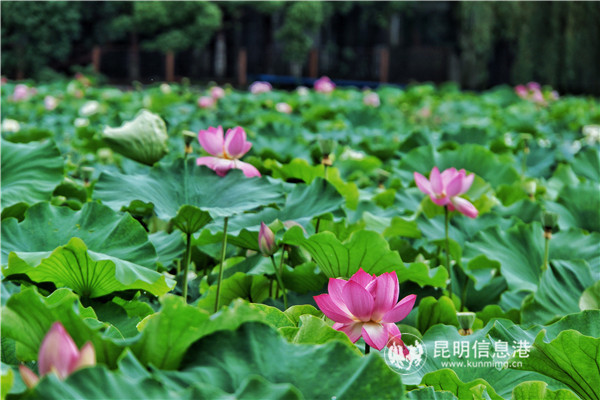 [InKunming--Kunming] July is the best time to admire lotus in Kunming’s Cuihu Park. Over 20 varieties of lotus are distributed in the pond everywhere and some of them bud while others wither. [Su Wenqian/InKunming]