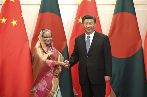 President Xi Jinping meets with Bangladeshi Prime Minister Sheikh Hasina in Beijing on Friday. [Photo by Feng Yongbin/China Daily]