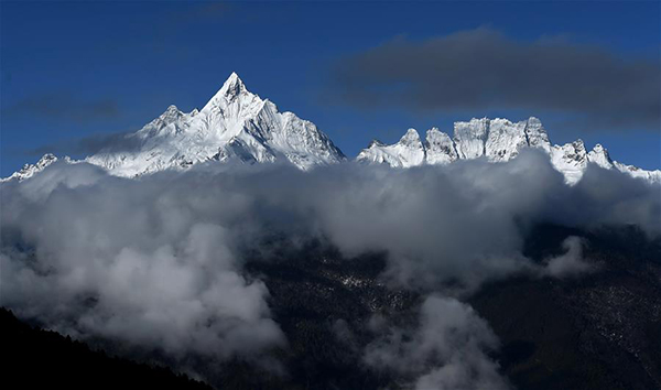 Photo taken on March 28, 2017, shows the beautiful scenery of Meli Snow Mountain in Yunnan. [Xinhua/Lin Yiguang]