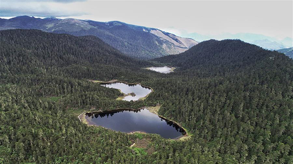 Aerial photo taken on June 8 shows that the landscape of Ninety-nine Dragon Lakes in Laojun Mountain in Lijiang city. [Xinhua/Qin Qing]