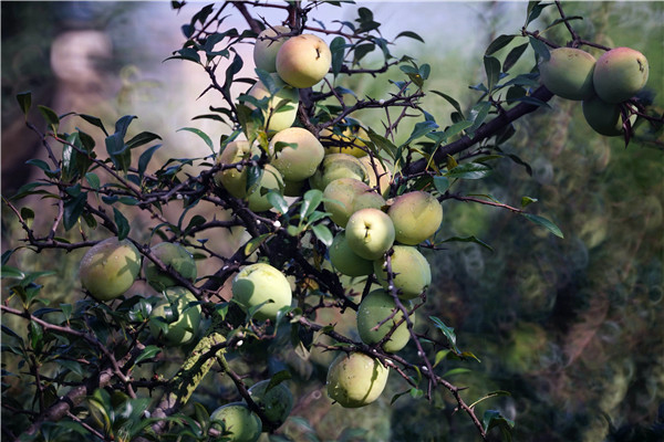 [InKunming--Kunming] Chaenomeles on the branches turn from green to yellow, and look like girls’ red cheeks under the sun. This beautiful scenery can be seen in Kunming’s Tanhua Temple which is a park and orchard. There are more than 500 chaenomeles trees hanging with ripe fruits. From August 17 to 31, visitors are welcomed to pick chaenomeles and explore more activities in the park.