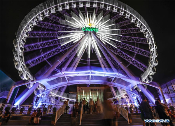 A ferris wheel is seen at the Asiatique night market in Bangkok, Thailand, Aug. 10, 2019. (Xinhua/Zhang Keren)