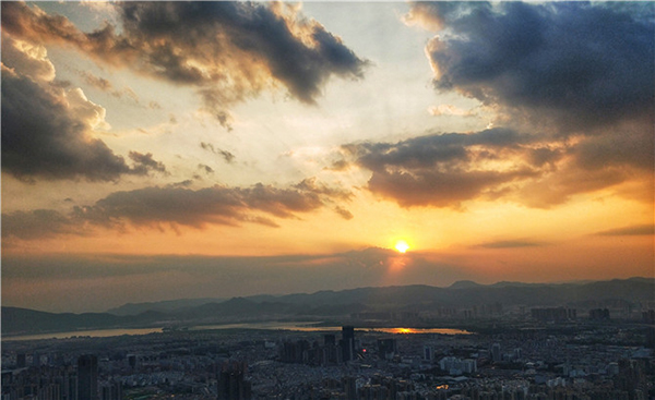 After the dinner, netizens went to two skyscrapers in Kunming, which are Wanda building and Kunming Iron-steel building. They climbed upstairs to catch the sunset. A red sun set slowly to the west while the silhouette of Xishan Mountain looked like sleeping beauty.