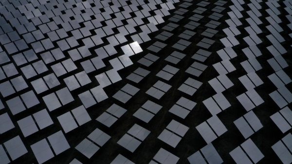 Aerial photo taken on April 16, 2021 shows facilities of a solar thermal electricity project in Gonghe County, Tibetan Autonomous Prefecture of Hainan in northwest China's Qinghai Province. (Xinhua/Zhang Hongxiang)