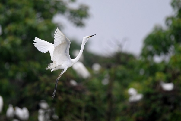 An egret flies at Xiangshan Forest Park in Xinjian District of Nanchang, east China's Jiangxi Province, May 18, 2021. (Xinhua/unreguser)