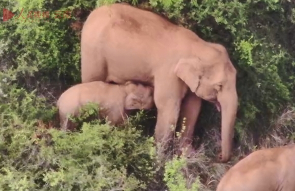 In the video, the mother stood quietly for her suckling calf. Experts say elephant calves less than a year old are usually dependent on mothers' milk as they have insufficient foraging abilities.