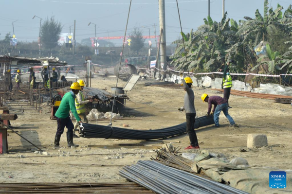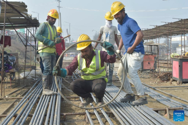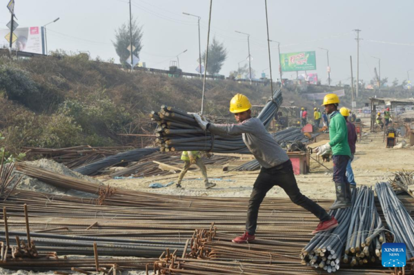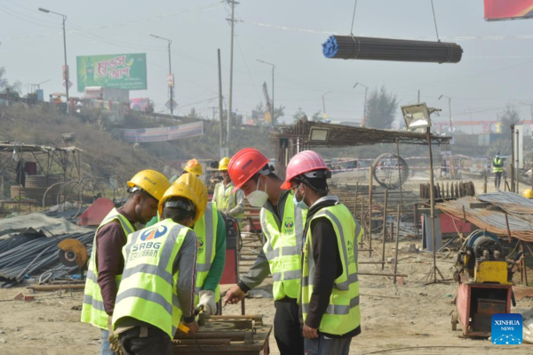 Workers build an expressway which bypasses Dhaka, capital of Bangladesh, Jan. 4, 2022.