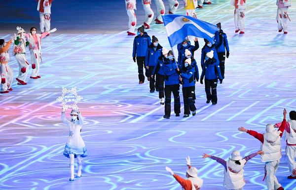 The Olympic delegation of Argentina parade into the National Stadium during the opening ceremony of the Beijing 2022 Olympic Winter Games in Beijing, capital of China, Feb. 4, 2022. (Xinhua/Xiong Qi)