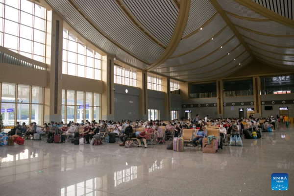 Photo taken on Feb. 25, 2022 shows the waiting hall of the Luang Prabang Station in Luang Prabang, Laos. The Laos-China Railway was put into operation in December of 2021, which helped reviving the domestic tourism of Laos. At present, the demand of passengers travelling between Vientiane and the ancient capital of Luang Prabang is growing.