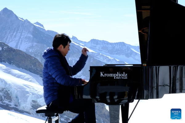 Chinese pianist Lang Lang on Thursday gave a solo piano performance at Jungfraujoch, the highest railway station in Europe, an artistic endeavor to promote cultural exchanges between China and Europe by means of music.