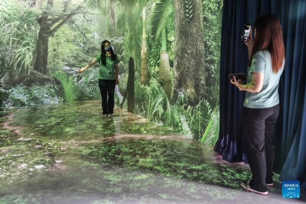 People visit a culture exhibition featuring tropical rainforest at a theme park of the Boao Forum for Asia (BFA) in Boao, south China's Hainan Province, April 21, 2022.