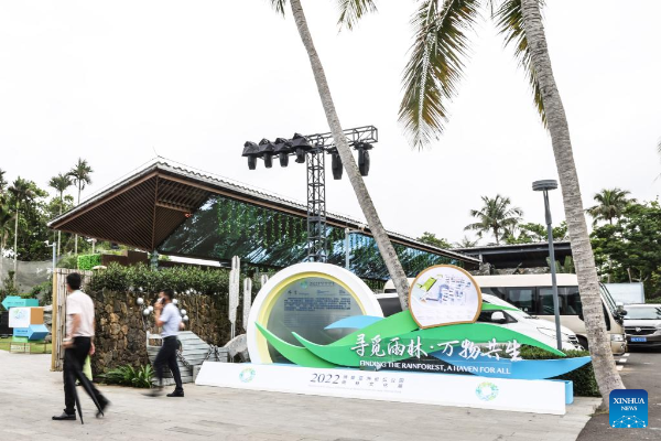 Photo taken on April 21, 2022 shows a culture exhibition featuring tropical rainforest at a theme park of the Boao Forum for Asia (BFA) in Boao, south China's Hainan Province.