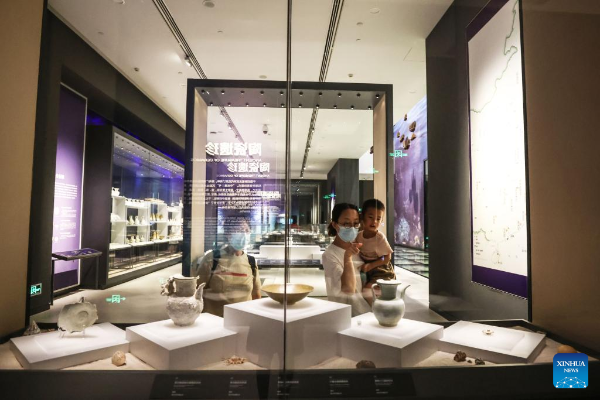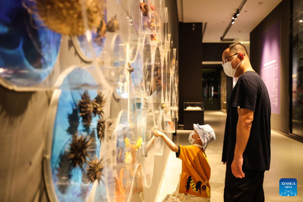Tourists visit an exhibition featuring marine civilization of the South China Sea at Hainan Museum in Haikou, south China's Hainan Province, April 24, 2022. (Xinhua/Zhang Liyun)