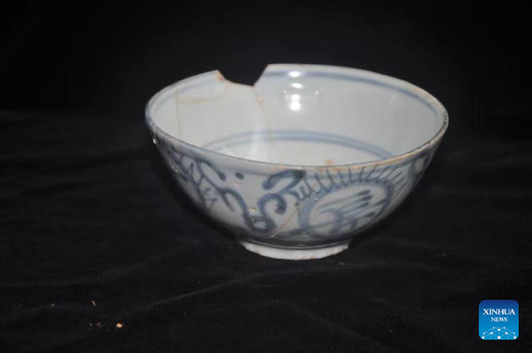 File photo shows a porcelain bowl unearthed at the Houbeishan tomb complex in the city of Yongzhou, central China's Hunan Province.