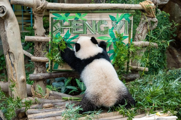 The third locally bred giant panda cub born in May last year in Malaysia is officially named Sheng Yi, which means "peaceful and friendship."