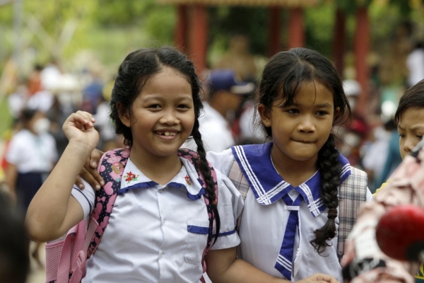 Children leave a school in Phnom Penh, Cambodia, on May 30, 2022. (Photo by Phearum/Xinhua)