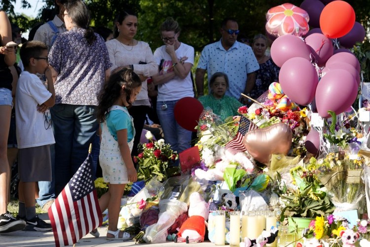 People mourn for victims of a school mass shooting at Town Square in Uvalde, Texas, the United States, May 28, 2022. [Photo/Xinhua]