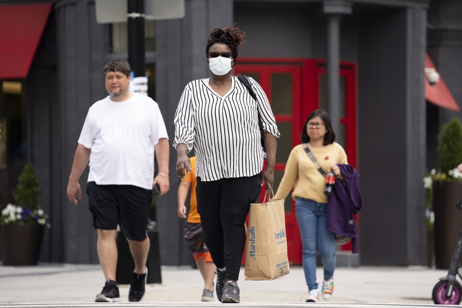 Photo taken on May 11, 2022 shows pedestrians walking on the street in Washington, D.C., the United States. (Xinhua/Liu Jie)