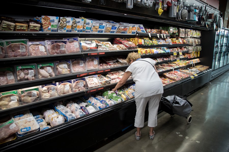 A woman shops at a grocery store in the Brooklyn borough of New York, the United States, on June 10, 2022. (Photo by Michael Nagle/Xinhua)