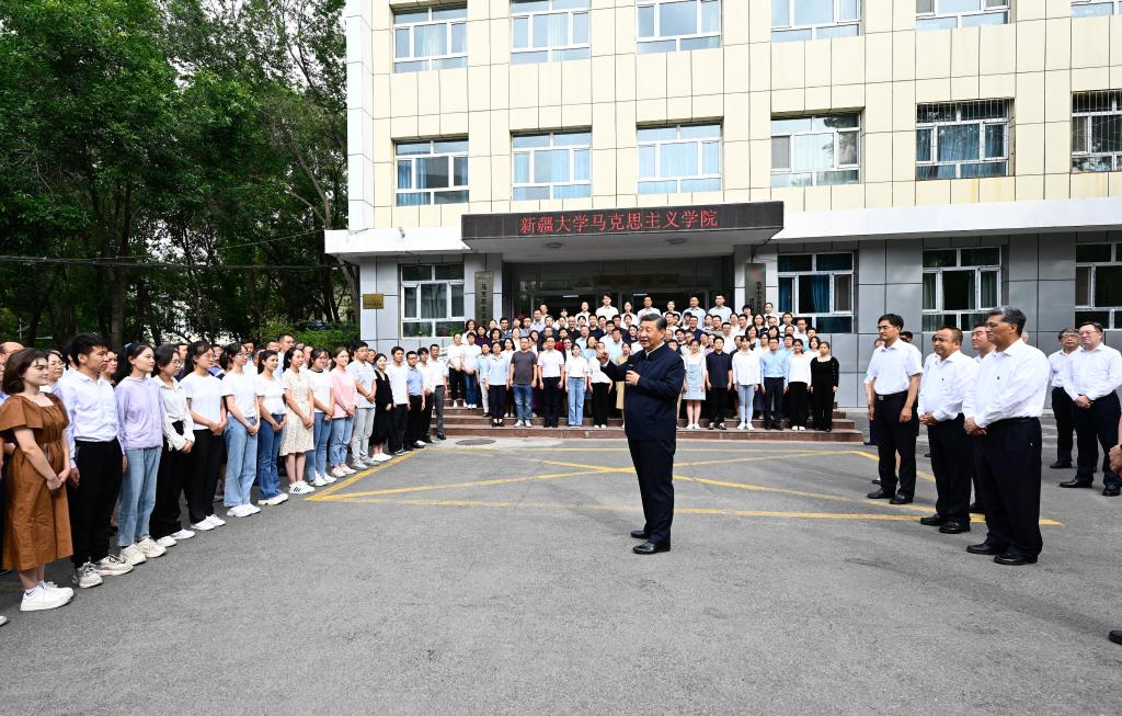 While visiting Xinjiang University on Tuesday afternoon, Xi learned about its history and development, and its efforts in nurturing talent and promoting exchanges among different ethnic groups. Xi also listened to a briefing by students who had conducted a field study.