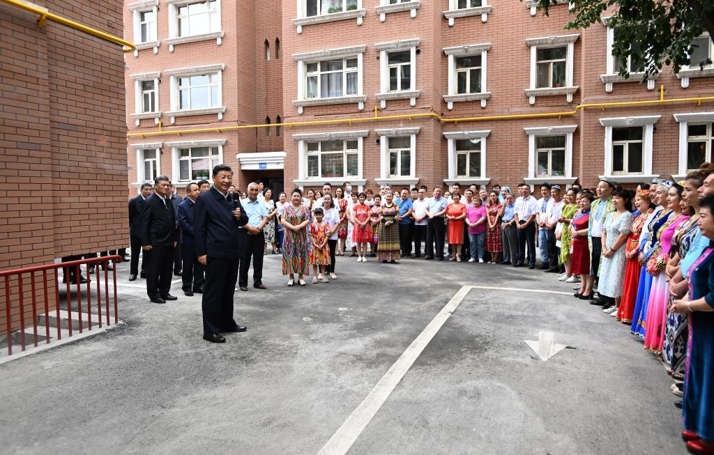 On Wednesday morning, Xi visited the residential community of Guyuanxiang in the Tianshan District in Urumqi, in which people from ethnic-minority groups account for more than 95 percent of the total residents.