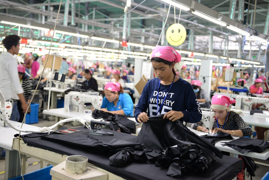 Workers are busy at Chinese enterprise HoDo Group in the Chinese-operated Sihanoukville Special Economic Zone in Cambodia, June 6, 2016. (Xinhua)