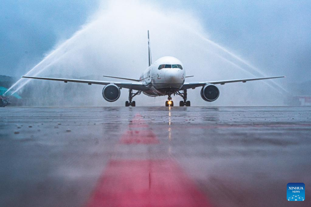 A Boeing 767-300 cargo plane took off from the Ezhou Huahu Airport in central China's Hubei Province at 11:36 a.m. Sunday, marking the official start of operations of China's first professional cargo hub airport.