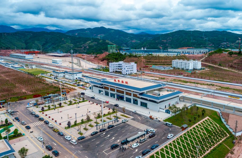Aerial photo taken on July 19, 2022 shows the Yongping County Railway Station along the Dali-Baoshan section of Dali-Ruili Railway in southwest China's Yunnan Province. (Xinhua/Chen Xinbo)